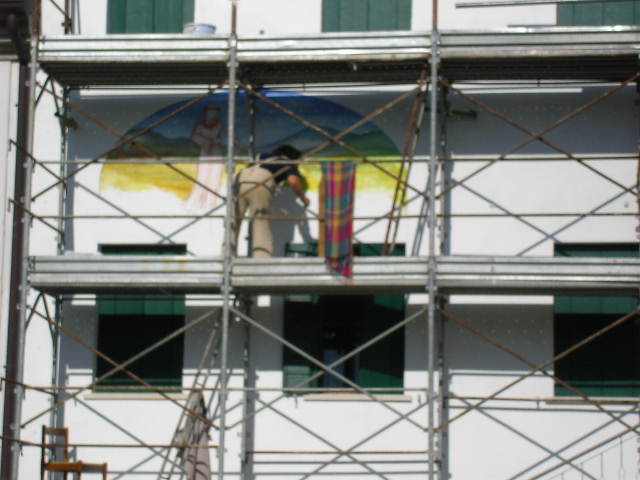 Ora un'artista generosa dipinge per noi un piccolo affresco che rappresenta San Francesco nell'atto di trasformare due bastoni in uno strumento musicale.